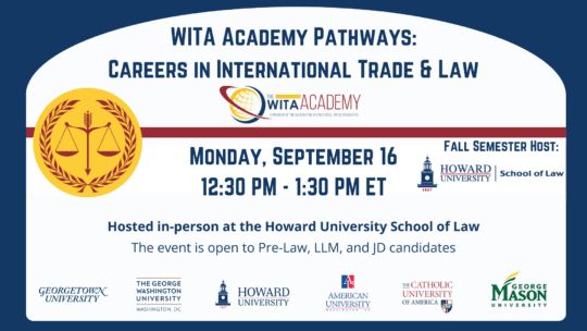 The WITA Academy has launched a new Pathways to Opportunity Program on Careers in International Trade & Law. Law students and undergraduates will hear from law firms and trade professionals about career opportunities in international trade and law.