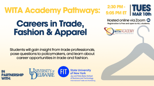 The mission of the WITA Academy™ is to provide trade education and career development opportunities in international trade to individuals across the United States and around the world. By expanding the network, the WITA Academy™ builds a stronger and more dynamic trade community.